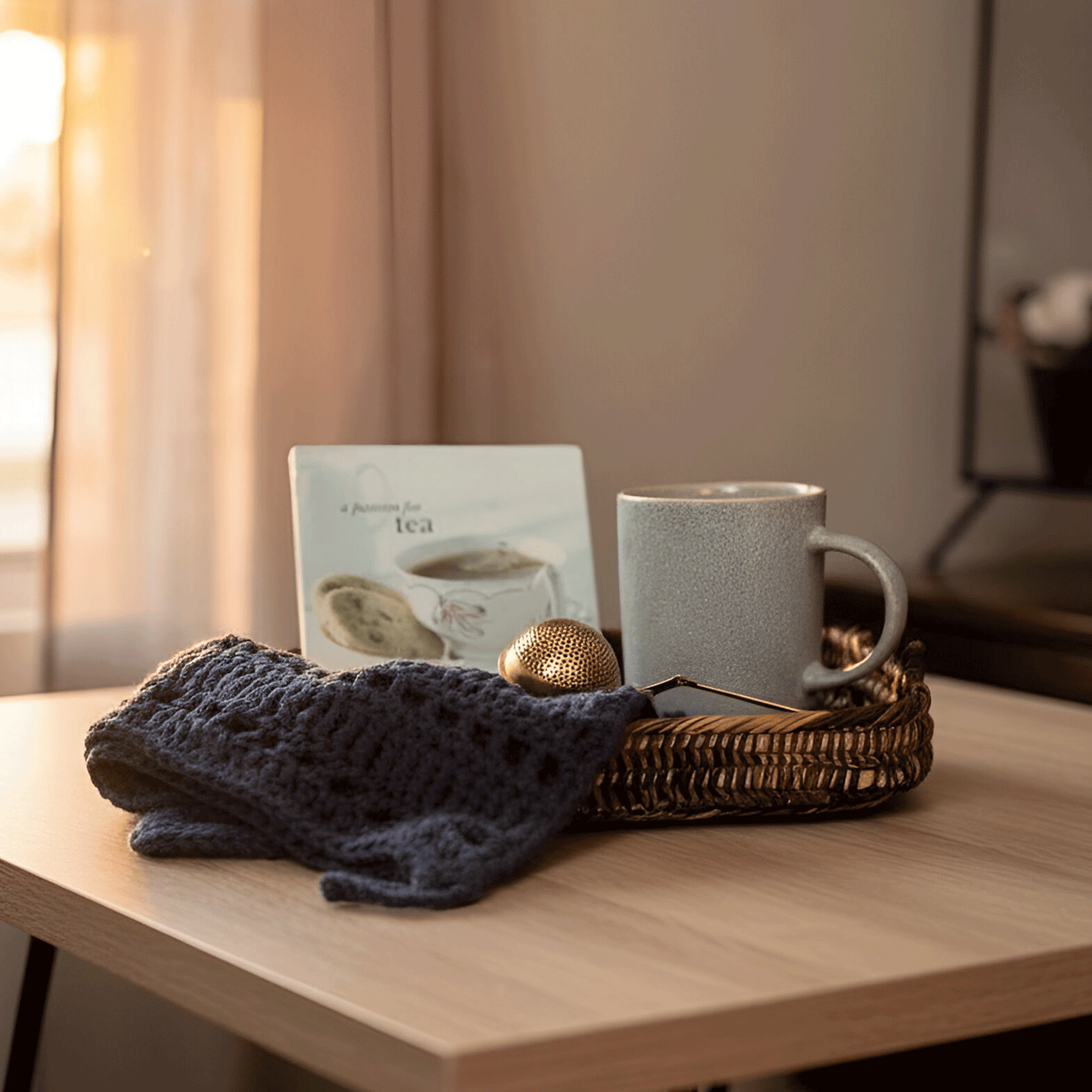 Featuring a speckled blue mug for maximum cozy vibes, a handmade hand towel for those accidental tea-sasters, the essential book "A Passion for Tea" by Hattie Ellis to deepen your cuppa knowledge, and a sleek gold tea infuser—because loose leaf is basically self-care. Gift it to your favorite friend who knows how to listen and how to brew!