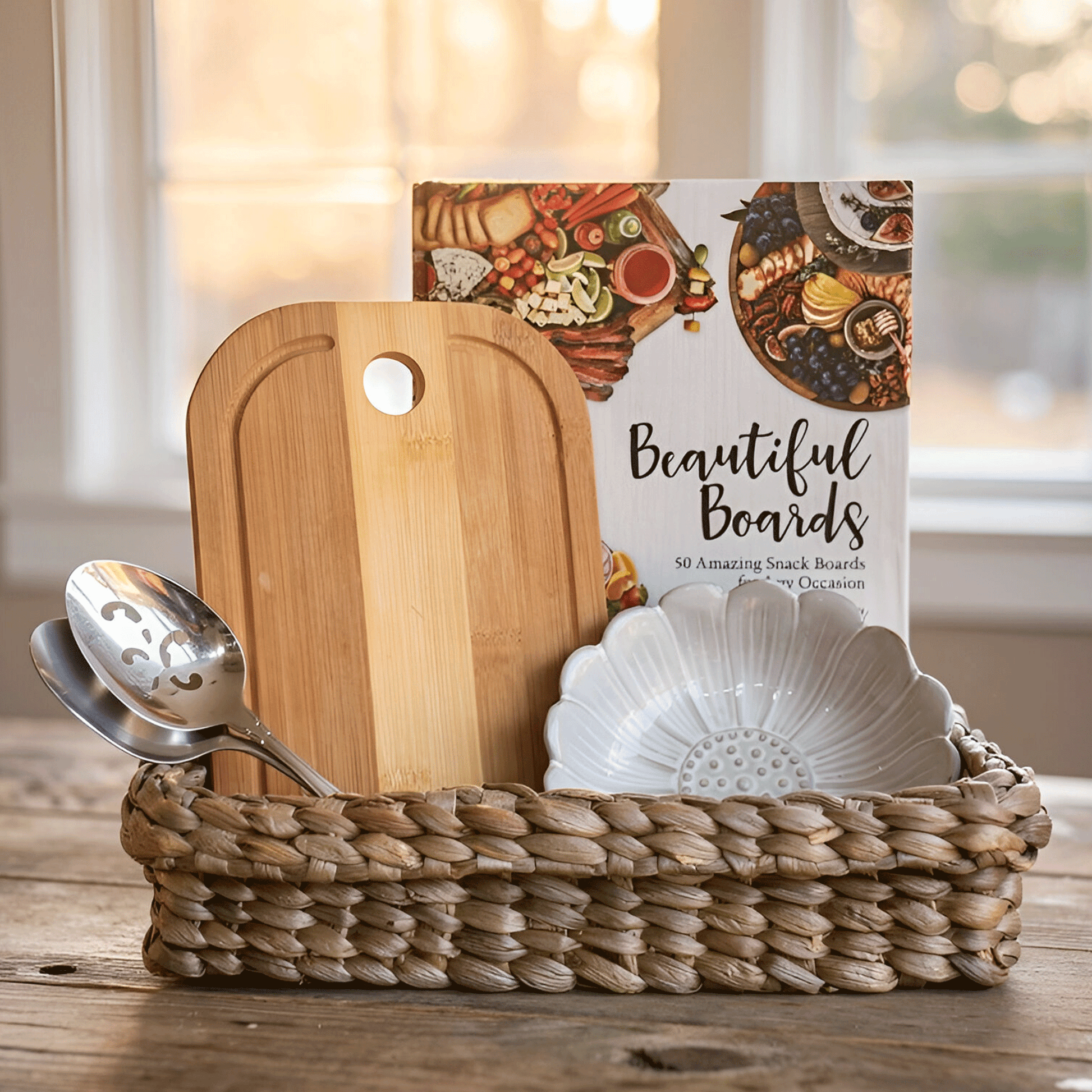 We’ve paired the ultimate guide to snacking, the "Beautiful Boards" cookbook, with a chic bamboo cutting board to lay out the spread. Toss in some sleek silver serving spoons and a grey daisy bowl for the olives or nuts, and you’ve got a setup that looks brie-lliant. It’s everything they need to make their next gathering (or solo wine night) totally Instagrammable.
